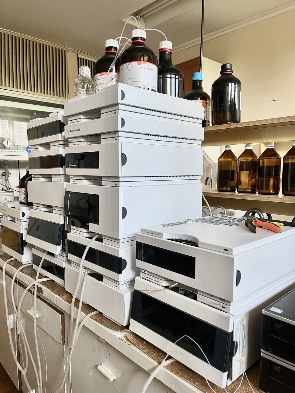 Otrzymywane kultury in vitro roślin leczniczych (kultury kalusowe, zawiesinowe, pędów, korzeni) i całe zregenerowane rośliny badane są fitochemicznie pod kątem wytwarzania ważnych dla lecznictwa, kosmetologii i przemysłu spożywczego metabolitów wtórnych. Badania te obejmują optymalizacje warunków ekstrakcji (dobór rozpuszczalnika oraz techniki procesu: wytrząsanie orbitalne, ekstrakcja aparatem Soxhlett’a i/lub w ultradźwiękach, jak również wstępne oczyszczanie poprzez ekstrakcję ciecz-ciecz) oraz wydajnej izolacji technikami chromatograficznymi (separacja analitów techniką NP-TLC i RP-TLC, flash, semipreparatywną oraz preparatywną HPLC). W ramach analiz fitochemicznych, po zidentyfikowaniu struktury chemicznej głównych składników-metabolitów wtórnych, badane ekstrakty pochodzenia roślinnego poddawane są analizie ilościowej technikami HPLC-DAD oraz UHPLC-DAD-FLD w celu dokonania oceny potencjału biosyntetycznego prowadzonych roślinnych kultur in vitro. Głównymi grupami metabolitów wtórnych, będącymi w obszarze zainteresowań naukowych Zakładu są: związki polifenolowe (S. viridis, S. bulleyana, Dracocephalum moldavica. D. forrestii), glikozydy sekoirydoidowe i irydoidowe (Centaurium erythraea, Harpagophytum procumbens, Rehmannia glutinosa), diterpeny i triterpeny (Salvia austriaca, S. przewalskii, S. miltiorrhiza), składniki olejku eterycznego (Arnica montana, Salvia przewalskii, S. sclarea), laktonów seskwiterpenowe (Arnica montana). Ponadto dla zwiększenia wytwarzania metabolitów wtórnych w warunkach in vitro stosuj się selekcję wysokoproduktywnych linii komórkowych, dobór odpowiedniego podłoża i warunków hodowli oraz elicytację (jasmonian metylu, kwas salicylowy, różne rodzaje światła, ultradźwięki).
