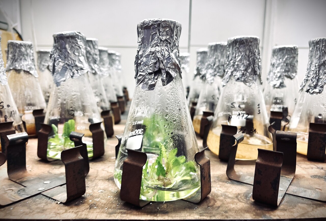 W zakresie transformacji genetycznej roślin prowadzimy badania głównie nad otrzymaniem kultur transformowanych korzeni, zwanych również korzeniami włośnikowatymi lub transgenicznymi. Kultury prowadzone są na skalę laboratoryjną (kolby Erlenmeyera) i makro (bioreaktory).