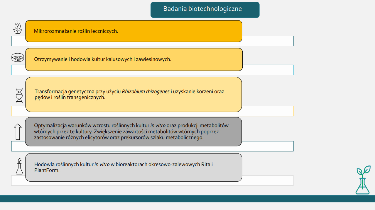 Studenckie Koło Naukowe przy Zakładzie Biologii i Botaniki Farmaceutycznej zaprasza Studentów chcących poszerzyć swoją wiedzę z zakresu roślinnych kultur in vitro. Celem Koła jest rozwijanie zainteresowań związanych z prowadzeniem badań naukowych z biotechnologii roślin leczniczych, fitochemii i biologii molekularnej.